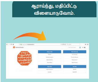 படி 2: மராத்திய சாம்ராஜ்யத்தின் காலக்கோடு, வரலாற்றுப் புகழ்மிக்க இடங்கள், இயங்குறு வரைபடங்கள், மராத்தியர்களின் கோட்டைகள் பற்றிய புகைப்படத் தொகுப்பு போன்றவற்றை நீங்கள் ஆராய்ந்து அறிந்து கொள்ளலாம்.