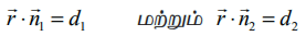 எனும் ஒரே தளத்தில் அமையும் இணை அல்லாத இரண்டு நேர்க்கோடுகளை கொண்டுள்ள தளத்தின் துணையலகு வெக்டர் சமன்பாடு