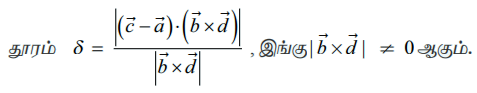 எனும் இணை அல்லாத இரண்டு நேர்க்கோடுகள் ஒரே தளத்தில் அமைவதற்கான நிபந்தனை (
