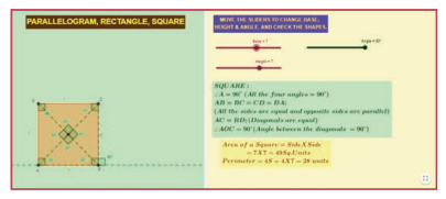 நழுவலை நகர்த்திக் கிடைக்கப்பெறும் வடிவங்களான இணைகரம் அல்லது செவ்வகம் அல்லது சதுரத்தில் கொடுக்கப்பட்ட புள்ளிகளை உற்றுநோக்குக.