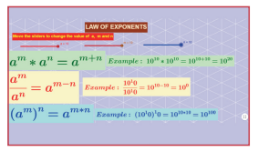 'a' மற்றும் ‘b' என்பன ஏதேனும் இரு பூச்சியமற்ற எண்கள் எனவும், ‘m' மற்றும் 'n' என்பன இயல் எண்கள் எனவும் கருதினால்,