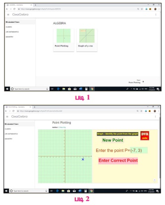 படி 1 உலாவியைத் திறந்து பின்வரும் உரலி தொடர்பை தட்டச்சு செய்யவும் (அல்லது) விரைவுத் தகவல் குறியீட்டை நுட்பமாய் சோதிக்க. ‘இயற்கணிதம்' என்ற பயிற்சி ஏடு ஜியோஜீப்ராவில் திறக்கும். அதில் ‘புள்ளிகளை குறித்தல்’ என்ற பணித்தாள் மீது சொடுக்கவும்.