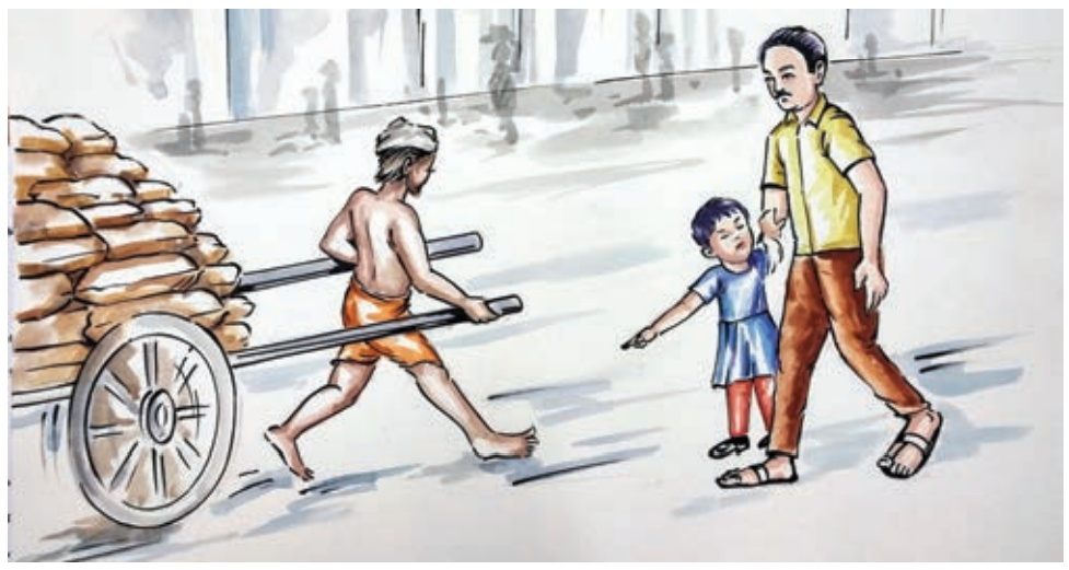 குளிப்பாட்டலாம் என்றவள், அதற்கு ஏன் பால்சோறு,நம் நாய்க்கே போடலாம் என்கிறாள். செருப்பில்லாமல் வண்டி இழுக்கும்