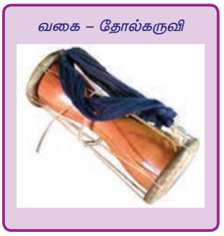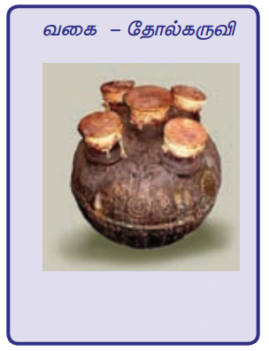 1. விலங்குகளின் தோலால் மூடப்பட்டுச் செய்யப்படும் கருவிகள் தோல்கருவிகள் எனப்படும். (எ.கா.) முழவு, முரசு