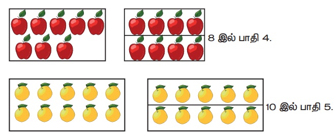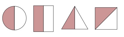 மேற்கண்ட ஒவ்வொரு படமும் இரண்டு சமபாகமாக பிரிக்கப்பட்டுள்ளன. அதில் ஒரு பாகத்திற்கு வண்ணமிடப்பட்டுள்ளது. ஒவ்வொரு பாகமும் "அரைப்பாகம்" ஆகும்.