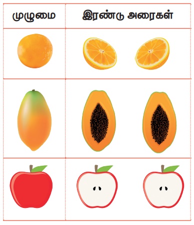 முழுமையிலிருந்து கால், அரை, முக்கால் ஆகியவற்றை அடையாளம் காணுதல்