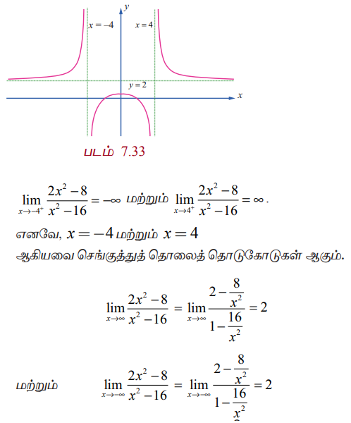 f(x) = 2x2 – 8 / x2 - 16 என்ற வளைவரையின் தொலைத் தொடுகோடுகளைக் காண்க.