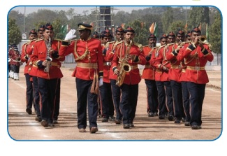ஒரு விளையாட்டு நிகழ்ச்சியின் தொடக்க விழாவில் ரசிக்கத்தக்க ஓர் நிகழ்வாக இசைக்குழுவின் அணிவகுப்பு அமையும். இசைக்குழுவின் உறுப்பினர்கள் இசைக்குறிப்புகளைக் கற்றுக்கொள்வதில் மட்டும் தங்கள் நேரத்தைச் செலவிடுவதில்லை . இசைக்குழுவின் நகர்வுகளைக் கற்பதிலும் செலவிடுகின்றனர். இசைக்குழுவின் செயல்பாட்டில் ஒவ்வொரு உறுப்பினரும் நகரும் விதம் இடப்பெயர்வுக்குச் சிறந்த எடுத்துக்காட்டாகும்.