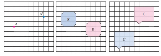 பின்வரும் சோடி உருவங்களின் உருமாற்றத்தை இடப்பெயர்வு, எதிரொளிப்பு அல்லது சுழற்சி முறையில் எழுதுக.