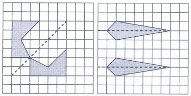பின்வரும் ஒவ்வொரு படத்திலுள்ள வடிவத்தைக் கொடுக்கப்பட்ட எதிரொளிப்புக் கோட்டைப் பொருத்து பிரதிபலிப்புச் செய்க.