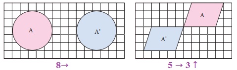 3. கீழ்கண்டவற்றில், முன்உரு A ஆனது நிழல்உரு A' ஆக எவ்வகையில் இடம்பெயர்வு செய்யப்பட்டுள்ளது?