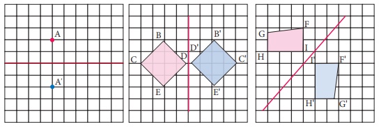 2. கொடுக்கப்பட்ட எதிரொளிப்புக் கோட்டைப் பொருத்து கொடுக்கப்பட்ட வடிவத்தை எதிரொளிப்பு செய்க.