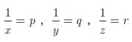 எனவே, x = 1/p = 3, y = 1/q = 1, z = 1/r = 2 . அதாவது, x = 3, y = 1, z = 2 .