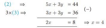x = 1 என (4) -யில் பிரதியிட, 5 + y =7 ⇒ y = 2