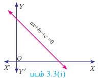 ax + by + c = 0, என்ற வடிவில் இரு மாறிகளில் அமைந்த நேரிய சமன்பாடு ஒரு நேர்க்கோட்டைக் குறிக்கும்.
