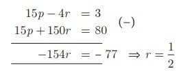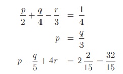 r = 1/2 என (4) -யில் பிரதியிட நமக்குக் கிடைப்பது, 15p - 2 = 3 ⇒ p = 1/3