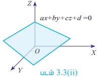 நாம் முந்தைய வகுப்பில் இரு மாறிகளில் அமைந்த நேரிய ஒருங்கமை சமன்பாடுகளைத் தீர்ப்பதற்கான பல்வேறு முறைகளைக் கற்றோம். இங்கு நாம் x, y மற்றும் z என்ற மூன்று மாறிகளில் அமைந்த நேரிய சமன்பாட்டு தொகுப்பிற்குத் தீர்வு காண்போம். x, y, z என்ற மூன்று மாறிகளில் அமைந்த நேரிய சமன்பாட்டின் பொது வடிவம் ax + by + cz + d = 0, இங்கு a, b, c, d என்பன மெய்யெண்கள் மற்றும் a, b, c என்பனவற்றில் ஏதேனும் ஒன்றாவது பூச்சியமற்றதாக இருக்கும்.