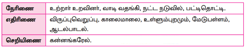 பின்வரும் இணைச்சொற்களை வகைப்படுத்துக.