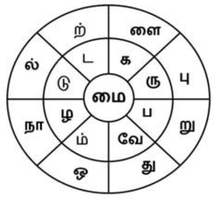 வட்டத்தில் உள்ள எழுத்துகளைப் பயன்படுத்திச் சொற்களை உருவாக்குக