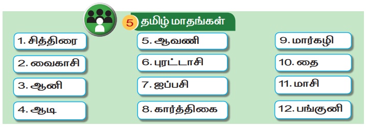 1 ஆம் வகுப்பு தமிழ் : பருவம் 3 இயல் 5 : தமிழ் மாதங்கள்
