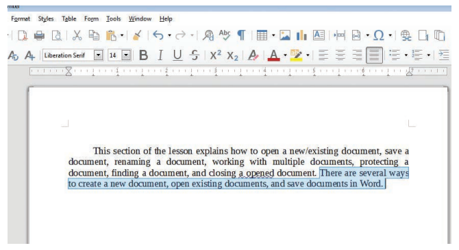 ஆவணத்தை உருவாக்கும் போது ஒவ்வொரு எழுத்தாக தட்டச்சு செய்தாலும் திருத்தும் போதும் வடிவூட்டும் போதும் சொற்களையோ வரிகளையோ பத்திகளையோ அல்லது சில நேரம் முழு ஆவணத்தையோ தேர்ந்தெடுக்க வேண்டி வரும். உரைகளை தேர்ந்தெடுத்த பின்னால் தேவையான மாற்றங்களை செய்து கொள்ளலாம். உரையை நகர்த்தவும், நகல் எடுக்கவும் தடிப்பாக்கவும் முடியும். உரையை தேர்ந்தெடுக்க சுட்டி அல்லது விசைப்பலகையை பயன்படுத்தலாம்.