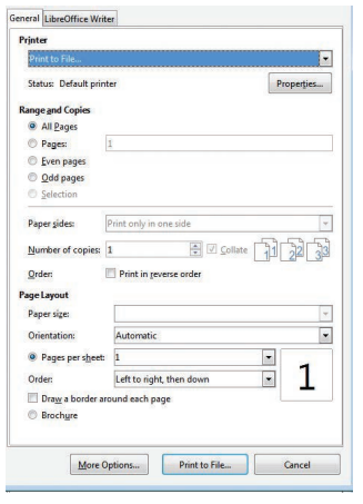 அச்சு உரையாடல் பெட்டி திறக்கும். அச்சு வரம்பு, நகல்களின் எண்ணிக்கை, அச்சுப்பொறி பெயர் போன்ற விருப்பத் தேர்வுகளை தேர்ந்தெடுக்கவும். அச்சுப்பொறியை “on” செய்யவும். மற்றும் தாள் அச்சியந்திர தட்டில் சரியாக வைக்கப்பட்டுள்ளதா என்பதை சரி பார்க்கவும்.