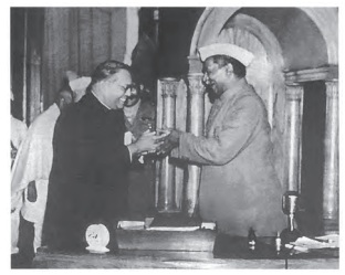 அரசமைப்புச் சட்டத்தின் உண்மைப் பிரதிகள் (இந்தி, ஆங்கிலம்) நாடாளுமன்ற நூலகத்தில்