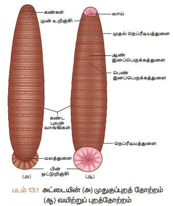 கண்ட அமைப்பு: மெட்டாமெரிசக் கண்ட அமைப்பு உடலில் காணப்படுகிறது. அட்டையின் உடல்