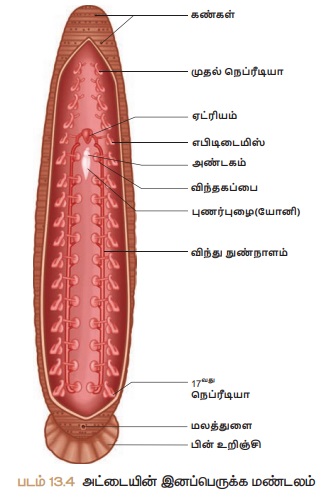 குழாயாகத் தொடர்கிறது. இருபக்க வெளியேற்றும் குழாய்களும் ஒன்றாக இணைந்து, இனப்பெருக்க