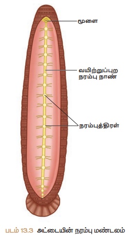 மண்டலம் நரம்பு வளையம் மற்றும் ஓரிணை வயிற்றுப்புற நரம்பு நாணைப் பெற்றுள்ளது.