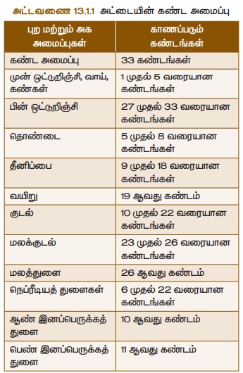 மேலோட்டமாக வளையங்கள் அல்லது அன்னுலையாகப் பிரிக்கப்பட்டுள்ளது.