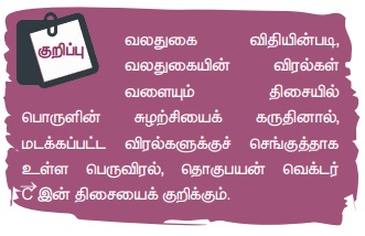 வெக்டர்களினாலான தளத்திற்குச் செங்குத்தாக இருக்கும். மேலும் வலதுகை திருகு ஒன்றை