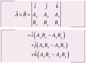 (viii) வெக்டர் கூறு முறையில் இரண்டு வெக்டர்களின் வெக்டர் பெருக்கலை கீழ்க்கண்டவாறு கண்டறியலாம்.