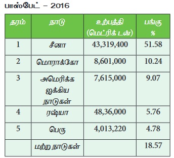 27.20 சதவீதத்தை உற்பத்தி செய்கிறது. அதைத் தொடர்ந்து பெரு இரண்டாவது இடத்தில் உள்ளது.