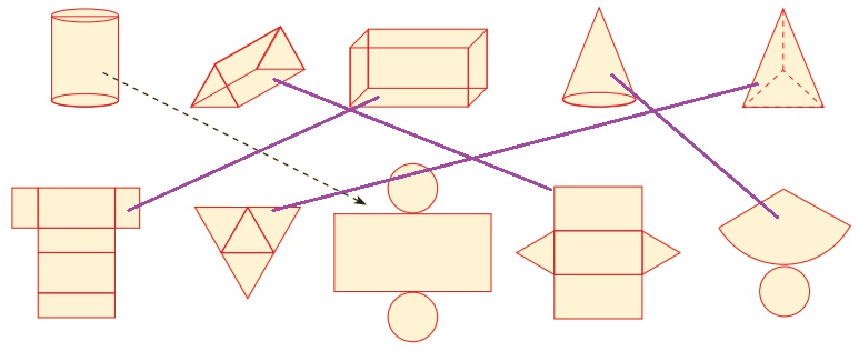 பின்வரும் வடிவங்களுக்குப் பொருத்தமான வலைகளைக் கோட்டின் மூலம் இணைக்க.