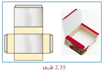 நாம் இனிப்பு வாங்கும் பொழுது, கடைக்காரர் சில மடிப்புகளுடன் தட்டையாக உள்ள அட்டையை எடுத்துப் படத்தில் காட்டியுள்ளவாறு மடித்து ஒரு செவ்வக வடிவப் பெட்டியை (கனச்செவ்வகம்) உருவாக்குகிறார். பிறகு, இனிப்புகளை அப்பெட்டிக்குள் அடுக்கி நம்மிடம் வழங்குகிறார்.