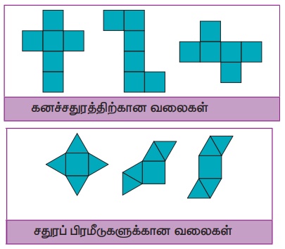 2. முப்பரிமாண வடிவங்களை (3−D) உருவாக்குவதற்கான வலைகள்