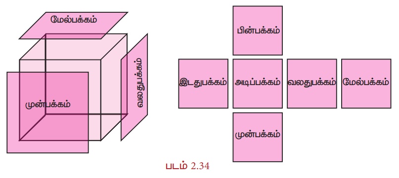 3. ஐசோமெட்ரிக் (Isometric) புள்ளித்தாள் மற்றும் கட்டகத்தாள் பயன்படுத்தி 3−D வடிவங்களை வரைதல்
