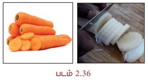 சமையலுக்காகக் காய்கறிகளை வெட்டும்போது, அவற்றுள் சில தள உருவங்களை நாம் காண்கிறோம். உதாரணமாக, கேரட் மற்றும் வாழைத்தண்டின் குறுக்குவெட்டுத் தோற்றமானது வட்டம் ஆகும்.