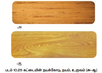 கட்டையின் அமைப்பையும் தரத்தையும் குறிக்கும். உருவம் (Figure): மரத்தை நீள்வட்டுத் திசையில் வெட்டும் பொழுது உள் அணுத்துகள்களில் ஏற்படுத்தப்பட்ட பாங்கினைக் குறிக்கிறது.