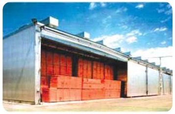 முறையாகும். வெட்டு மரத் துண்டங்கள் மூடப்பட்ட நீராவி வெப்பமூட்டி அறையில் வைத்து விசிறிகளின்