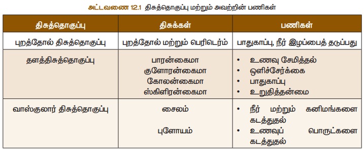 திசுத்தொகுப்புகளின் பணிகள் தரப்பட்டுள்ளன.