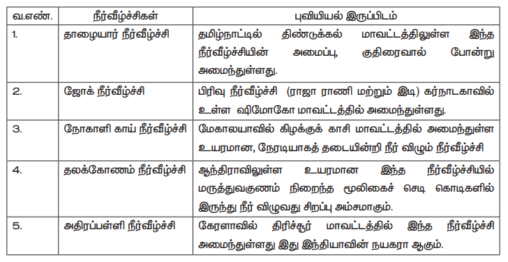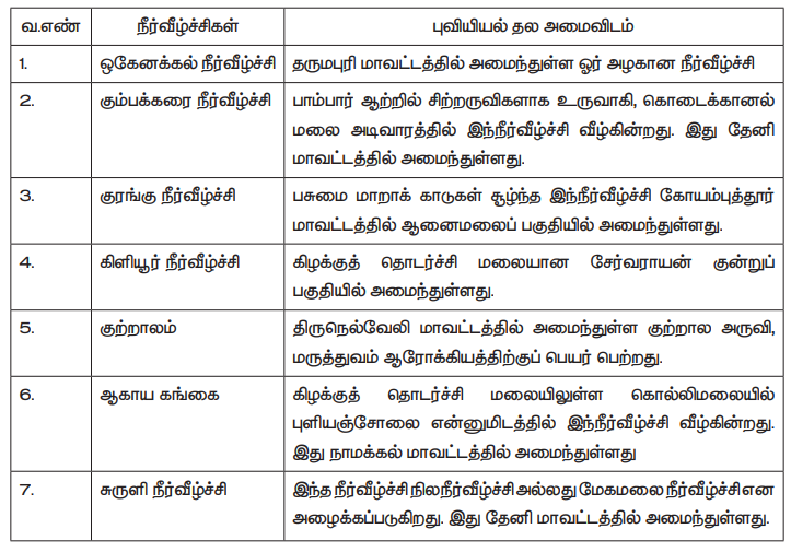 வ.எண் | நீர்வீழ்ச்சிகள் | புவியியல் தல அமைவிடம்