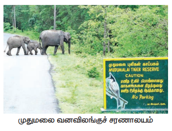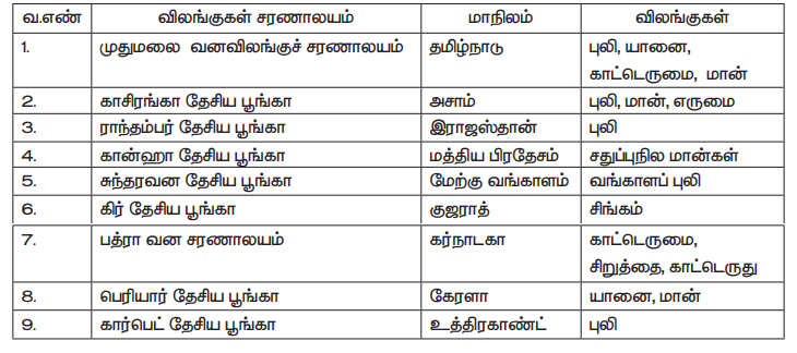 7. விலங்குகள் சரணாலயம் - Wildlife sanctuary - an area which provides protection and favourable living conditions to the wildlife