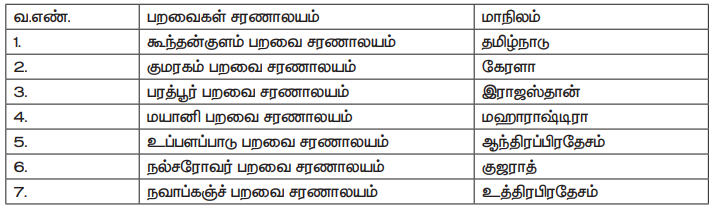 6. பறவைகள் சரணாலயம் - Bird sanctuary - an area of land in which birds are protected and encouraged to breed