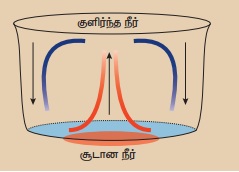 பிறகு, மேற்பகுதியிலுள்ள நீர் மூலக்கூறுகள் கீழே நகர்ந்து வெப்பமடைகின்றன. இந்த விதமான