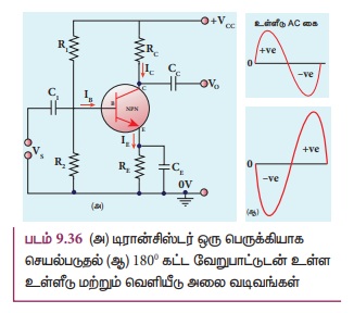 இதனால் வெளியீட்டு சைகை 180° திருப்பப்படுகிறது. இது படம் 9.36 (ஆ) இல் காட்டப்பட்டுள்ளது.