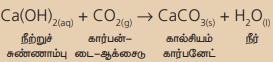 வெள்ளையடிக்க நீற்றுச் சுண்ணாம்பு கரைசலைப் பயன்படுத்துகிறோம். கால்சியம் ஹைட்ராக்சைடு, காற்றில் இருக்கும் கார்பன்-டை-ஆக்சைடுடன் வினை புரிந்து கால்சியம்