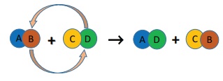 மீண்டும் இணைந்து AB என்ற சேர்மமாக மாறுகிறது.