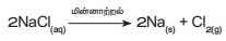 மின்னாற்றலைசெலுத்தும்போது சோடியம் குளோரைடு சிதைவுற்று உலோக சோடியம் மற்றும்